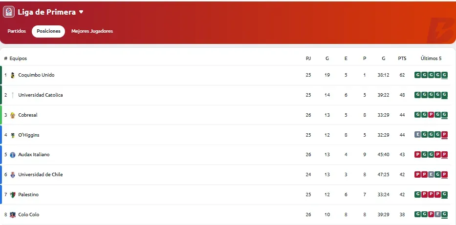 Sin embargo, hay otras cosas que también están en disputa en cada jornada del Campeonato Chileno 2025 . Equipos como O’Higgins, Audax Italiano y Universidad de Chile buscan un cupo en el certamen de clubes más importante de América.