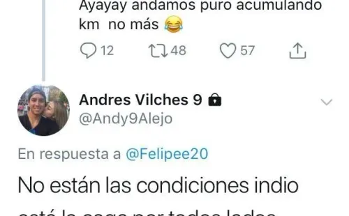 “No están las condiciones indio está la caga por todos lados“, escribió Andy en su cuenta, mensaje que fue aplaudido por algunos cyber hinchas.