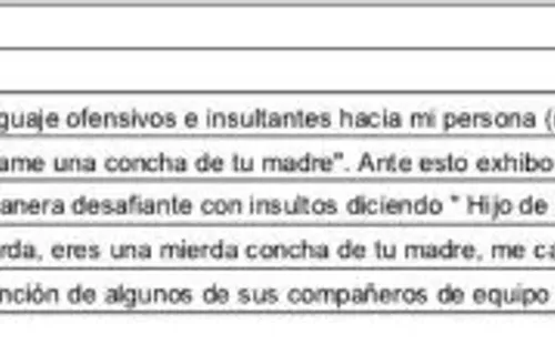 Tras este insulto y la expulsión vienen las palabras que ya conocíamos: “Me grita al oído ‘hijo de puta’ y prosigue de manera desafiante con insultosdiciendo ‘Hijo de las mil putas’ vos nunca vas a ser FIFA nunca, hijo de puta nunca vas a ser FIFA, eres una mierda, eres una mierda concha de tu madre, me cagaste, hijo de puta, no vas a ser FIFA nunca.’. Debiendo ser necesaria la intervención de algunos compañeros de su equipo, quienes intentaban contenerlo”.