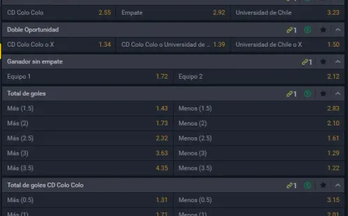 Para Betsala, el gran favorito para ganar en el Superclásico del fútbol chileno es Colo Colo, que paga 2,55 veces lo que juegues, por sobre los 3,23 que paga Universidad de Chile. Si firmas el empate, paga 2,92 veces lo que juegues en este compromiso.