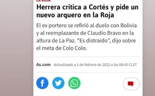 Estas fueron las palabras de Johnny Herrera en TST de TNT Sports, quien en la previa del triunfo de Chile ninguneó a Brayan Cortés, quien tapó bocascon una extraordinaria actuación.