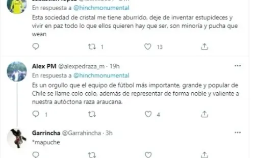 Las respuestas no se hicieron esperar ante esta idea, recibiendo el rechazo generalizado de los hinchas albos. Los usuarios afirmaron que el nombre de “pieles rojas” o “indios” derechamente es ofensivo, mientras que Colo Colo homenajea a un personaje histórico de la cultura mapuche.