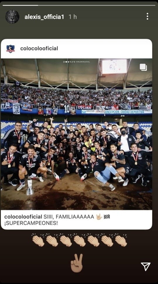 El jugador del Inter de Milán siempre está pendiente del club que lo formó y siguió muy atento el desarrollo del partido y mostró su festejo en su historia de Instagram. “Felicitaciones Colo Colo. Supercampeones”, fue el mensaje del volante.