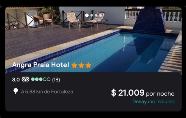 Ahora vamos al alojamiento y acá hay de todo. Desde un hotel por 100 pesos la noche a posadas por 14 mil pesos la noche. De hecho, hay una promoción de 21 mil pesos por noche en Angra Praia Hotel con desayuno incluido (todo visto en booking).