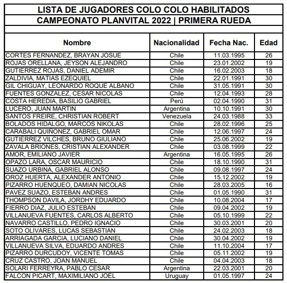 Es en este contexto donde la ANFP hizo oficial la lista de los jugadores inscritos de los 16 equipos que dicen presente en la Primera División en esta temporada 2022, por lo menos en su primera rueda antes del periodo de fichajes de mitad de año.