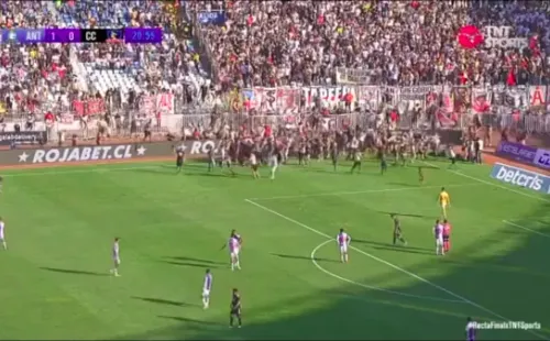Tras el tanto del volante de 22 años, una gran cantidad de hinchas ingresaron a la cancha para celebrar con los jugadores. Tras esto, un gran contingente de Fuerzas Especiales de Carabineros tuvo que entrar al recinto.