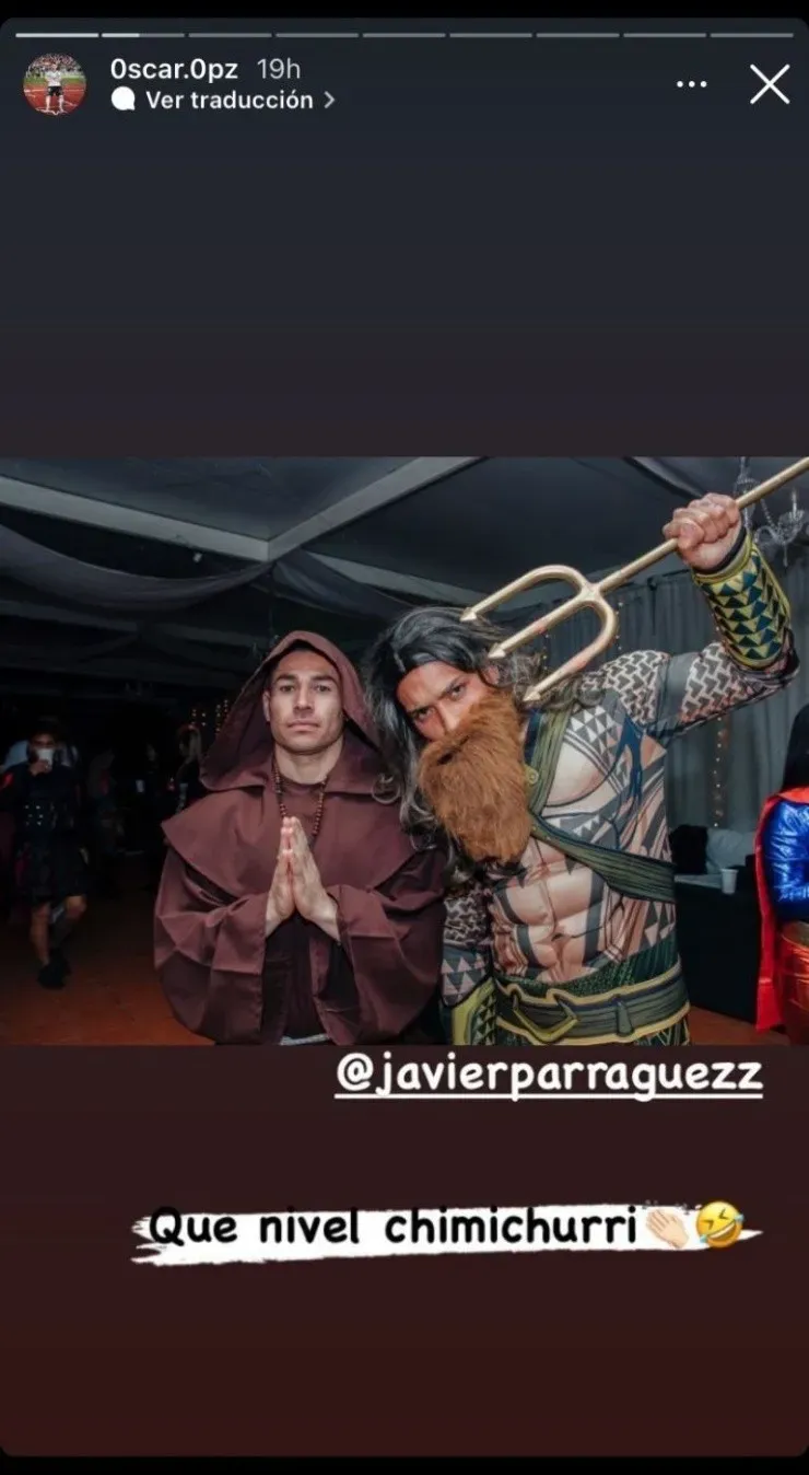El zaguero y anfitrión se vistió de Jesús y la festejada lo hizo de catrina mexicana. Además, en las fotos se pudo apreciar que Leonardo Gil llegó con una indumentaria tradicional alemana, Matías Zaldivia de cura, Javier Parraguez de Aquaman,Miiko Albornoz como Superman, César Fuentes de guerrero romano, Óscar Opazo de monje y Gabriel Costa de Capitán América.