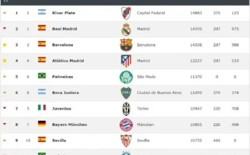 Con 14.883 unidades, el equipo que lidera es el campeón de la Copa Libertadores, RiverPlate, superando incluso al Real Madrid.