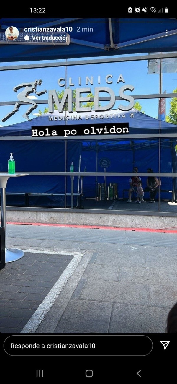 Hoy el jugador de Deportes Melipilla ha estado bastante activo en Instagram y subió una historia en un lugar muy típico para cerrar fichajes en Colo Colo: la Clínica MEDS. “Hola po olvidona”, agregó.