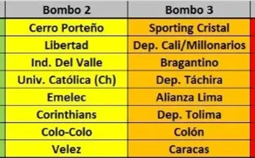 En el bombo 1 están Palmeiras, River Plate, Boca Juniors, Flamengo, Nacional, Peñarol, Atlético Mineiro y Athletico Paranaense, además uno por confirmar. Mientras que en el bombo 3 hay clubes como Monagas, Sporting Cristal, Alianza Lima, entre otros.