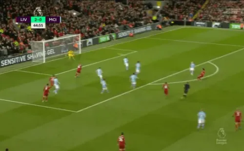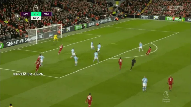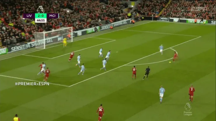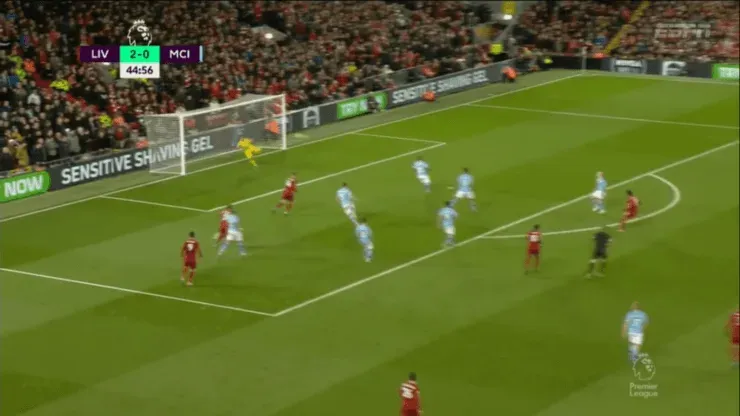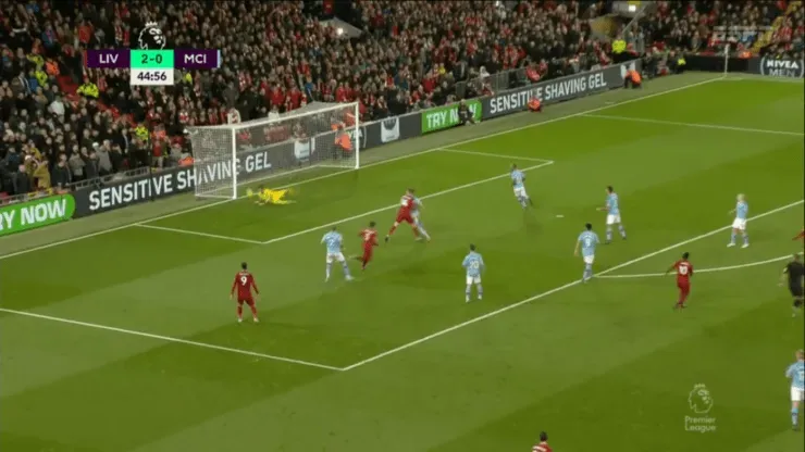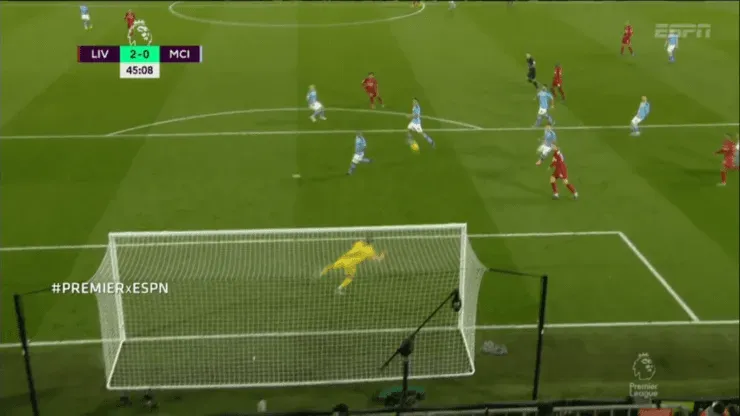 El egipcio iba por su segundo personal y el tercero del equipo de Jurgen Klopp con un remate a colocar desde fuera del área alos 45′, pero Bravo se le negó con una gran estirada para dejar al Manchester City en partido.