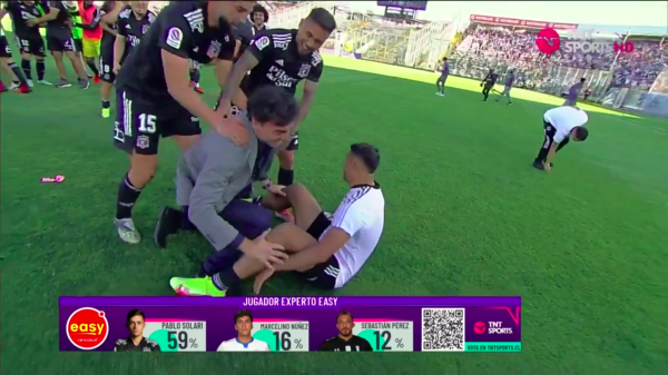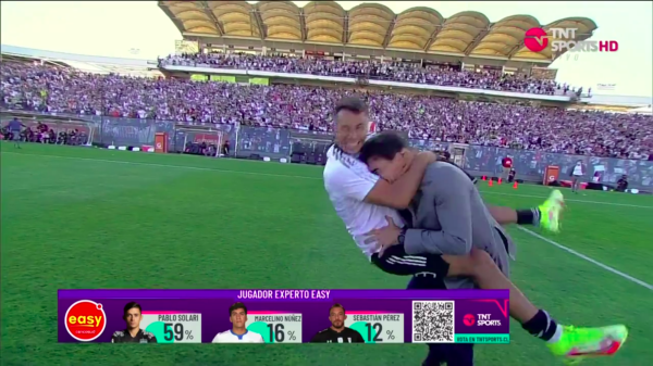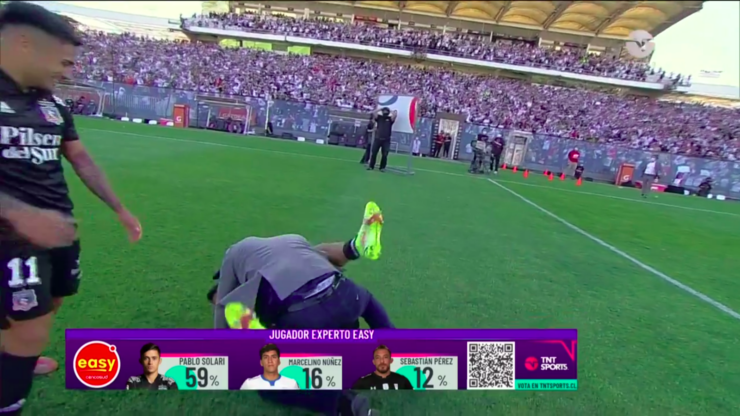 En las gradas, los 30 mil hinchas cantaban el himno de Colo Colo y en la cancha los jugadores festejaron alocadamente. Justamente, uno de ellos fue Iván Morales, quien se fundió en un fuerte abrazo con el entrenador Gustavo Quinteros, a quien incluso, tiró al césped David Arellano.