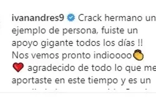 “Crack hermano un ejemplo de persona, fuiste un apoyo gigante todos los días !! Nos vemos pronto indioooo. Agradecido de todo lo que me aportaste en este tiempo y es un orgullo haber compartido cancha contigo hermano”, le dedicó el Tanquecito al volante.