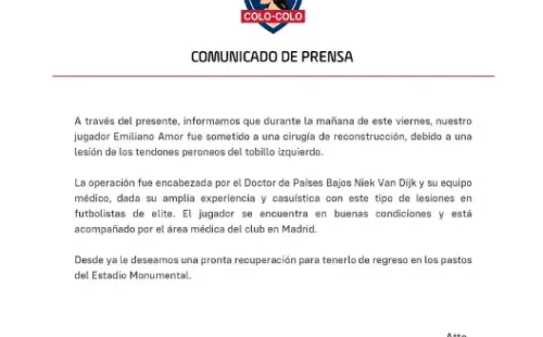 Recordemos, que debido a esta cirugía, Emiliano Amor se perderá el primer semestre de los Albos, por lo que no será inscrito por el club para esta Primera Rueda del Campeonato Nacional 2023.
