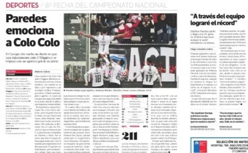 La Terceradestacó la remontada del Cacique con especial énfasis en el goleador del cuadro popular: “Esteban Paredes emociona a Colo Colo“fue el titular.