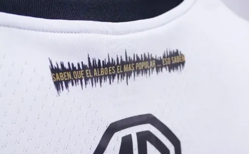 Una linda novedad viene en la parte baja del cuello por atrás, donde se lee “saben que el albo es el más popular, eso saben”, clásica canción de la gente alba grabada sobre ondas de sonido captadas en el Monumental mientras se entonaba.