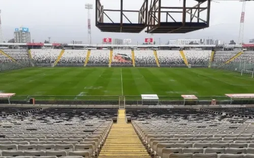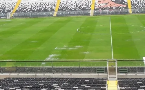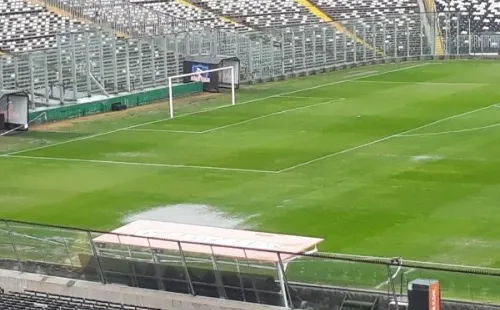 En estos momentos se pueden ver algunas pozas de agua en el césped del recinto de Macul y todavía es incierto si se podrá desarrollar el duelo de revancha entre albos y salmoneros.