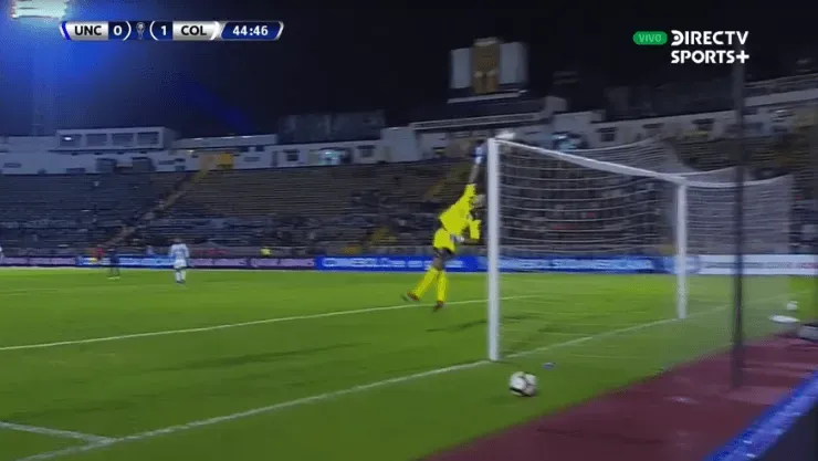 Brayan Cortés está teniendo su debut internacional con Colo Colo, y el portero en el primer tiempo respondió con un atajadón que le permitió a su equipo irse en ventaja al entretiempo.