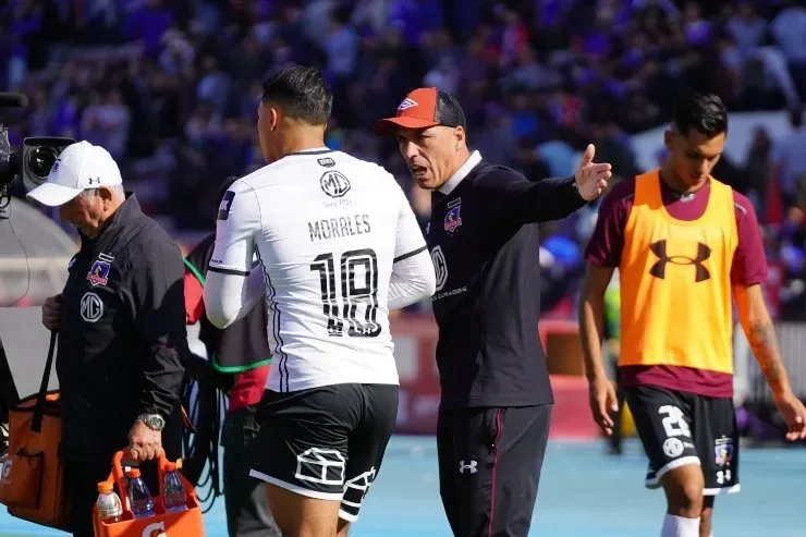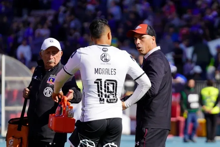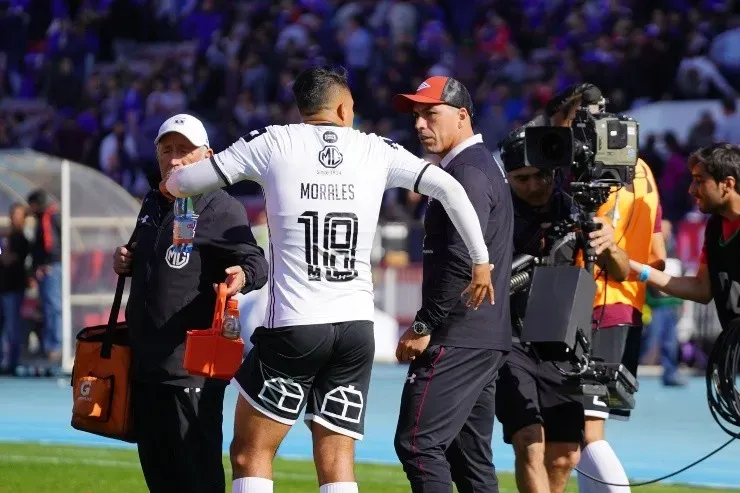Terminó el partido entre Colo Colo y la U en el Nacional y Pablo Mouche, caliente, se fue a camarines de manera rápida. Iván Morales lo iba a seguir, pero Esteban Paredes saltó del banco y, pese a la lesión, lo frenó.