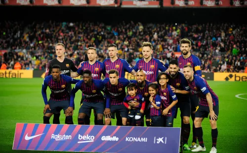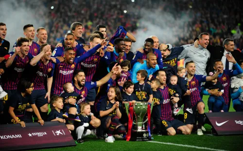 El Rey estuvo con sus hijos en el campo de juego el Estadio Camp Nou, quienes se fotografiaron con la copa de campeón. Además tuvo la compañía de su preparador físico personal y amigo, Juan Ramírez.