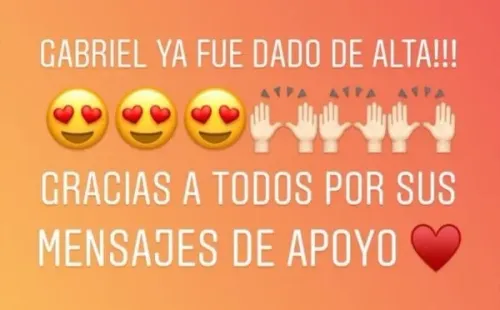 A eso hay que agregar que hoy fue dado de alta, noticia confirmada por su novia Gabriela Rojas, quién a través de su cuenta de Instagram.