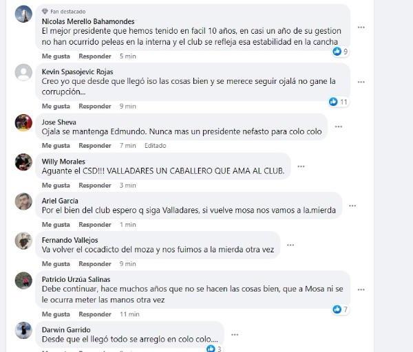 “Lo viene haciendo muy bien y tiene contacto con la gente. Ojalá no salgan con alguna triquiñuela para sacarlo”, “Todos queremos que siga. Ha mostrado real interés y amor por el club. Hay un ambiente único, refuerzos y una gestión increíble. Qué siga Valladares”, son sólo algunos de los comentarios de los fanáticos en redes sociales.