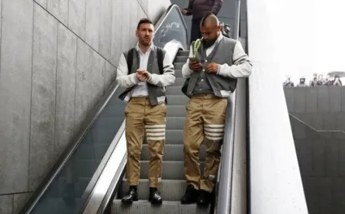 El encargado de vestir al club catalán fueel diseñador de ropa estadounidenseThom Browne. Arturo Vidal se lució junto a Lionel Messi.