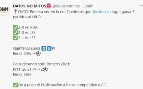 La racha positiva comenzó el 23 de mayo cuando por el Campeonato Nacional, derrotó 2-0 a Huachipato en Talcahuano, luego vino la victoria 2-0 ante Deportes La Serena en el Monumental y el triunfo de ayer, nuevamente ante los papayeros 3-1, esta vez por Copa Chile