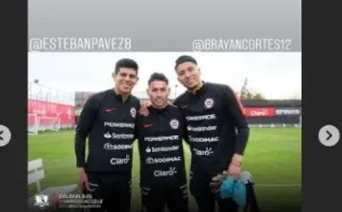 Una vez concluido el cotejo, el lateral derecho compartió una imagen en su historia de Instagramjunto a Esteban Pavez y Brayan Cortés, sus compañeros en los albos, donde además puso los colores del club.