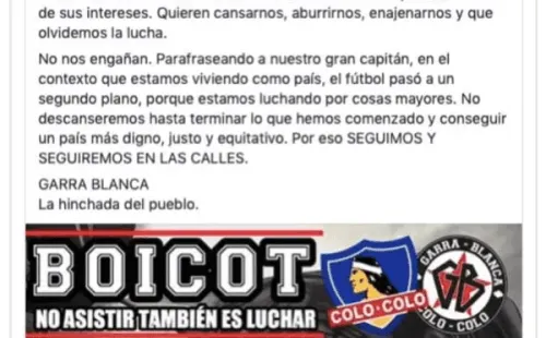 Durante estas horas,las hinchadas de los equipos más populares del país como Colo Colo, Universidad de Chile y Universidad Católica, publicaron comunicados rechazando esta medida.
