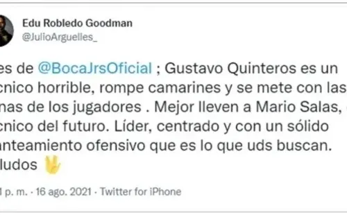 Dentro de los nombres sugeridos aparecieron los de Mario Salas, José Luis Sierra y hasta Gualberto Jara fueron parte de la lista de los chilenos donde se citaba a las cuentas oficiales de Boca en redes sociales. Revisa las principales publicaciones.