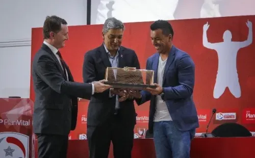 Y es que el ente rector del fútbol chileno realizó una ceremonia con todos los presidentes de los clubes, en la que le entregaron merecidos reconocimientos al goleador de Colo Colo, como una placa, una replica de su gol y una estrella en el paseo de la fama de la sede en Quilín.