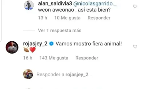 Los más jóvenes fueron los primeros en dedicarle palabras: Jeyson Rojas, Luciano Arriagada, Jordhy Thompson, Nicolás Garrido, Bruno Gutiérrez, Vicente Pizarro, entre otros, sueñen dejar mensajes de apoyo al nobel futbolista. Su compatriota, Maximiliano Falcón, es otro de los que apoya permanentemente al Zaguero.