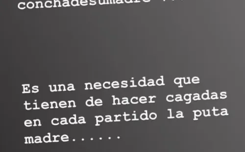 Donoso acompañó el texto con la imagen de la polémica jugada y agregó: “Facilito así, la conchadesumadre. Es una necesidad que tienen de hacer cagadas en cada partido, la puta madre“.