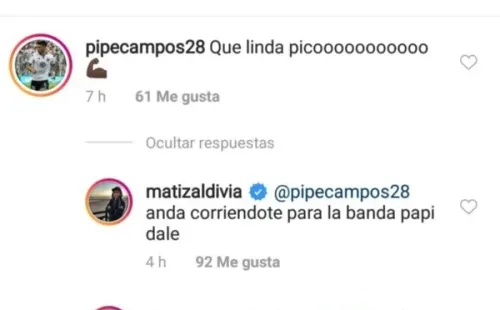 Las tallas de los jugadores se toman las cuentas de Instagram y uno que marcó presencia fue Matías Zaldivia, quien tiró la talla con Felipe Campos en la publicación de Juan Manuel Insaurralde.