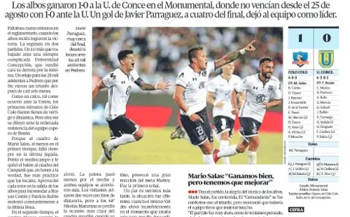 Las Últimas Noticias: No sólo destacaron el triunfo, sino que además conversaron con la mamá de Parragol, quien contó que lo llevaba al estadio desde chiquitito.