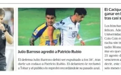 La Tercera: La edición impresa destacó al goleador del Cacique, y además le dio espacio al encontrón entre Barroso y Pato Rubio.