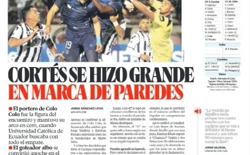 Publimetropor su parte, comentó que fueron los referentes los que le dieron altura a Colo Colo, haciendo un juego de palabras a las condiciones en las que jugaron en Quito y a la figura de Valdivia con Paredes.