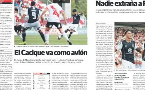 El diario La Tercera tituló “va como avión”, aludiendo a la campaña que realiza Colo Colo y que la reacción de Curicó fue tardía. Además, resalta que los albos han sacado la tarea adelante a pesar de ausencias importantes como la de Esteban Paredes.
