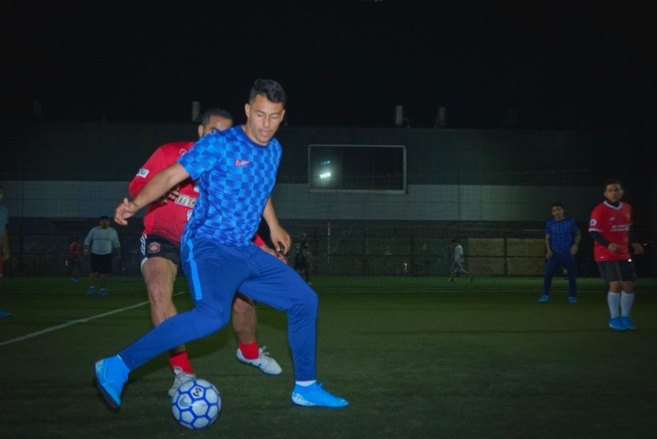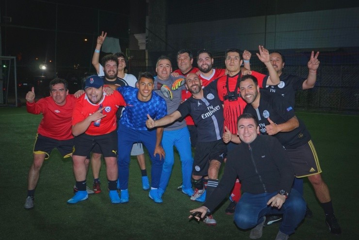 Los jugadores colocolinos sorprendieron a todos los asistentes yse sumaron a un partido de futbolito que se estaba jugando en Maipú.