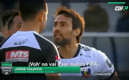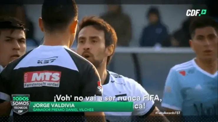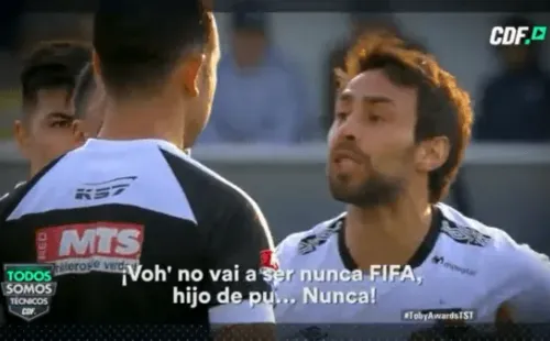 El momento fue destacado en el programa Todos Somos Técnicos de CDF en la sección “Toby Awards”, segmento de Marcelo Vega,dedicado a resaltar cosas negativas del año 2019en el fútbol chileno. El 10 ganó enla categoría “Premio Daniel Vilchés” al académico de la lengua.El mediocampista se impuso a los insultos de Marco Antonio Figueroa a los camarógrafos, y los retos de Ivo Basay a Fabián Cerda.