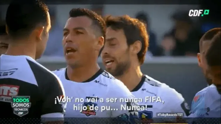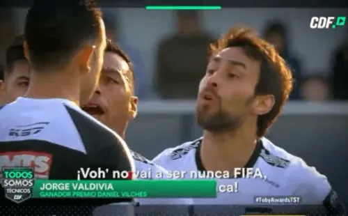 “El sr Valdivia me insulta diciendo ‘Cóbrame una concha de tu madre’. Ante esto le exhibo la tarjeta roja al jugador”, revela el informe arbitral del partido. Tras este insulto y la expulsión vienen las palabras que ya conocíamos:”Me grita al oído ‘hijo de puta’ y prosigue de manera desafiante con insultosdiciendo ‘Hijo de las mil putas’ vos nunca vas a ser FIFA nunca, hijo de puta nunca vas a ser FIFA, eres una mierda, eres una mierda concha de tu madre, me cagaste, hijo de puta, no vas a ser FIFA nunca.’. Debiendo ser necesaria la intervención de algunos compañeros de su equipo, quienes intentaban contenerlo”, consignó el informede Ángelo Hermosilla.