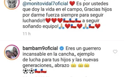 “Eres un guerrero incansable en la cancha, ejemplo de lucha para tus hijos y las nuevas generaciones. Abrazo”, escribió el histórico capitán de la Roja acompañado de coronas de rey, banderas de Chile y balones de fútbol.