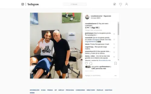 Pues bien, no es el caso de Ronald de la Fuente, lesionado lateral izquierdo de Colo Colo que sigue con su tratamiento por un esguince medial en su rodilla zurda y que hoy se topó con una verdadera leyenda en plena terapia.