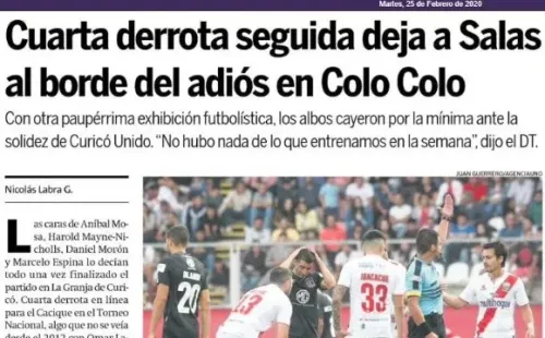 La derrota de Colo Colo ante Curicó Unido no pasó desapercibida para los principales medios de comunicaciones, quienes a pesar de la fiebre festivalera del momento le dedicaron ácidos titulares al mal momento de Mario Salas como entrenador.