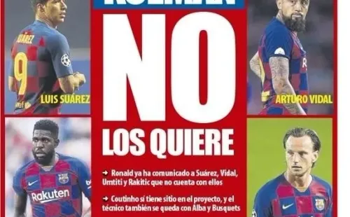 Esta información dio pie para que el mismo medio catalán ubicará al formado en Colo Colo dentro de la portada de su edición impresa para esta jornada del 25 de agosto del 2020, acompañando a Luis Suárez, Iván Rakitic y Samuel Umtiti como los jugadores a los que Koeman simplemente no los quiere.