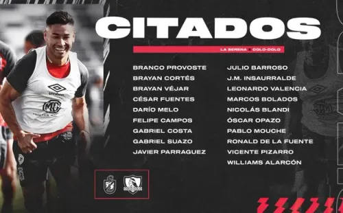 Colo Colo reveló su lista de citados para enfrentar a Deportes La Serena en el Estadio Bicentenario La Portada, por la fecha 7del Campeonato Nacional, donde espera volver a sonreír tras cinco fechas sin ganar.