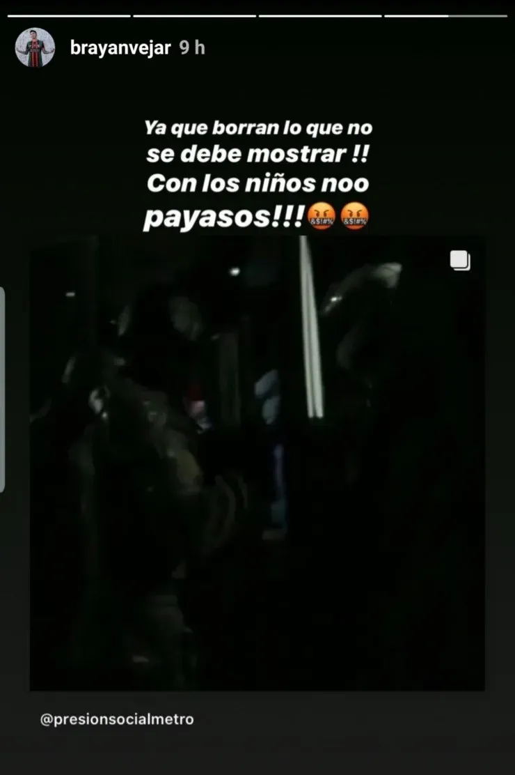 Gabriel Suazo, volante de Colo Colo, y Brayan Véjar, ex jugador del Cacique, compartieron en instagram la denuncia de los niños detenidos, donde incluso uno de ellos está con su camiseta de Colo Colo,ycondenaronenfática y drásticamente el actuar de la policía.Sin embargo, ambos aseguraron que la red social les borróla publicación.