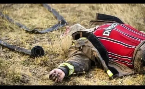 La imagen de Héctor Sáez se hizo conocida en todo el país y causó gran emoción: exhausto, tendido en el suelo, tras su comeon trabajo apagando el incendio en Pitrufquén, y con la camiseta de Colo Colo bajo su traje protector para el fuego.