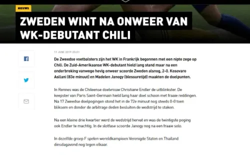 Telegraph, tras el encuentro, recalcó que “las suecas encontraron un muro impenetrable en la portero Christiane Endler”, mientras que VTBL, de Holanda, destacó que la ex alba “fue la estrella en Rennes, manteniendo su arco en cero durante mucho tiempo, con hermosas salvadas”.